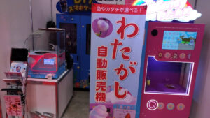 作る過程も楽しめる綿菓子自販機も人気です。